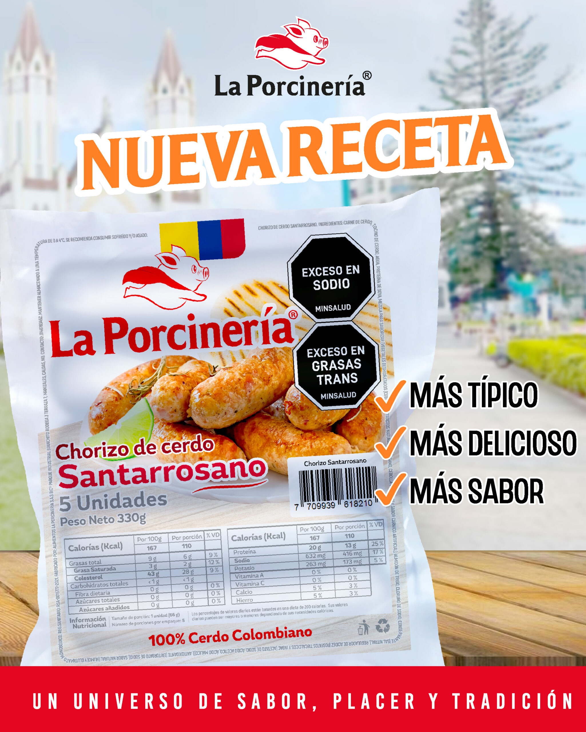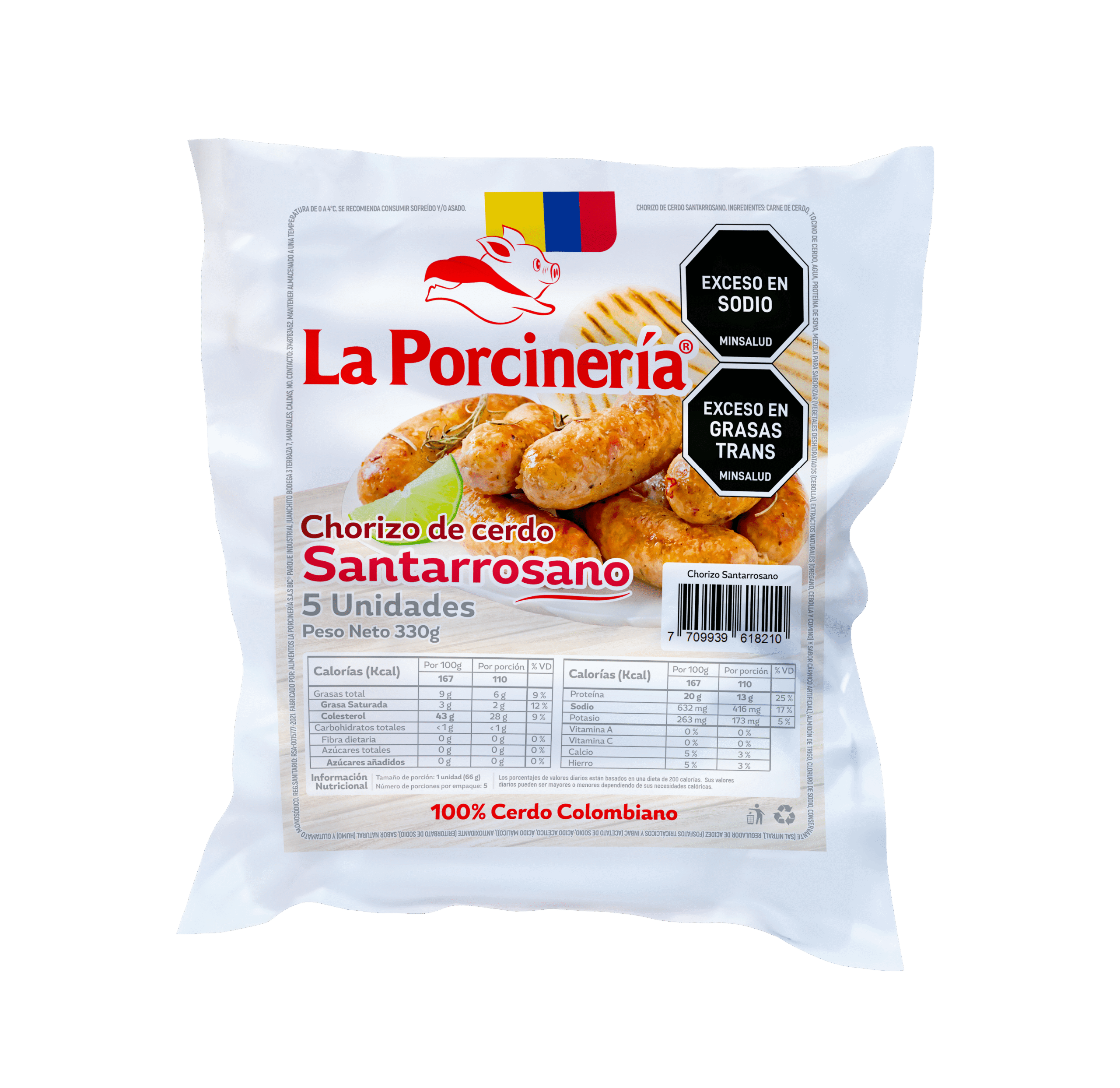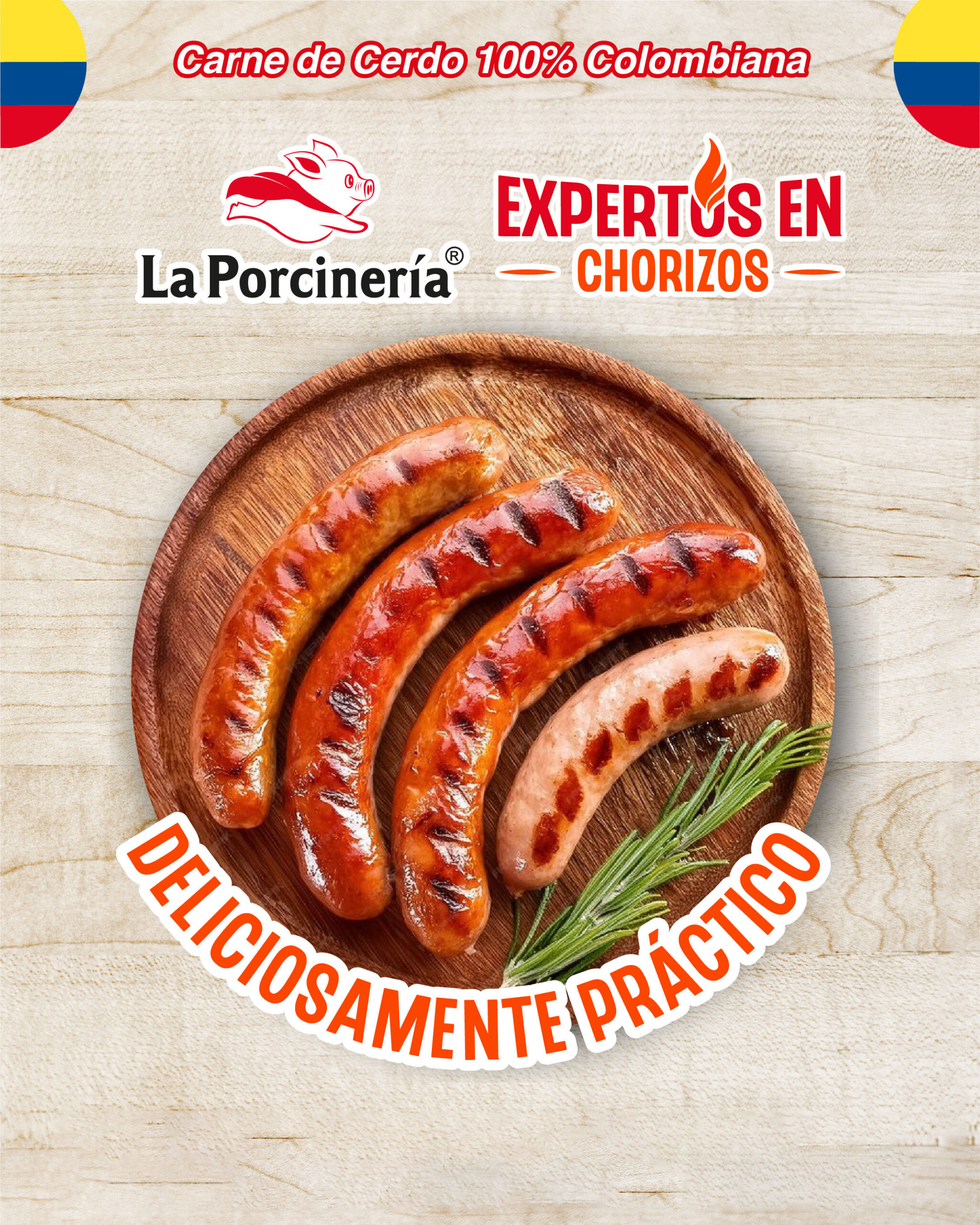 Chorizo artesanal con sabor y tradición cafetera. Métodos de cocción: asar, freír, hervir.