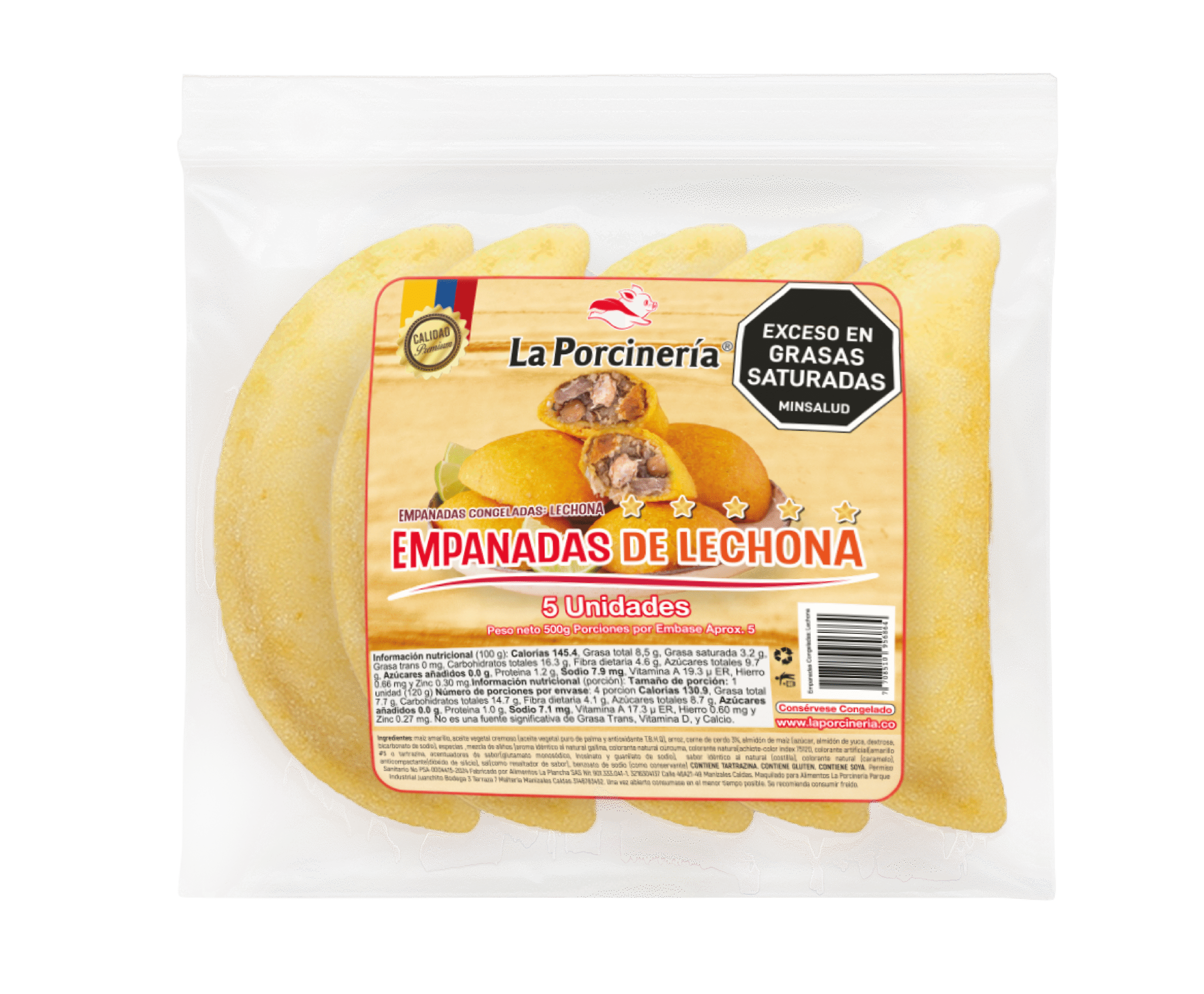 Empanada de maíz rellena con preparación típica de lechona.