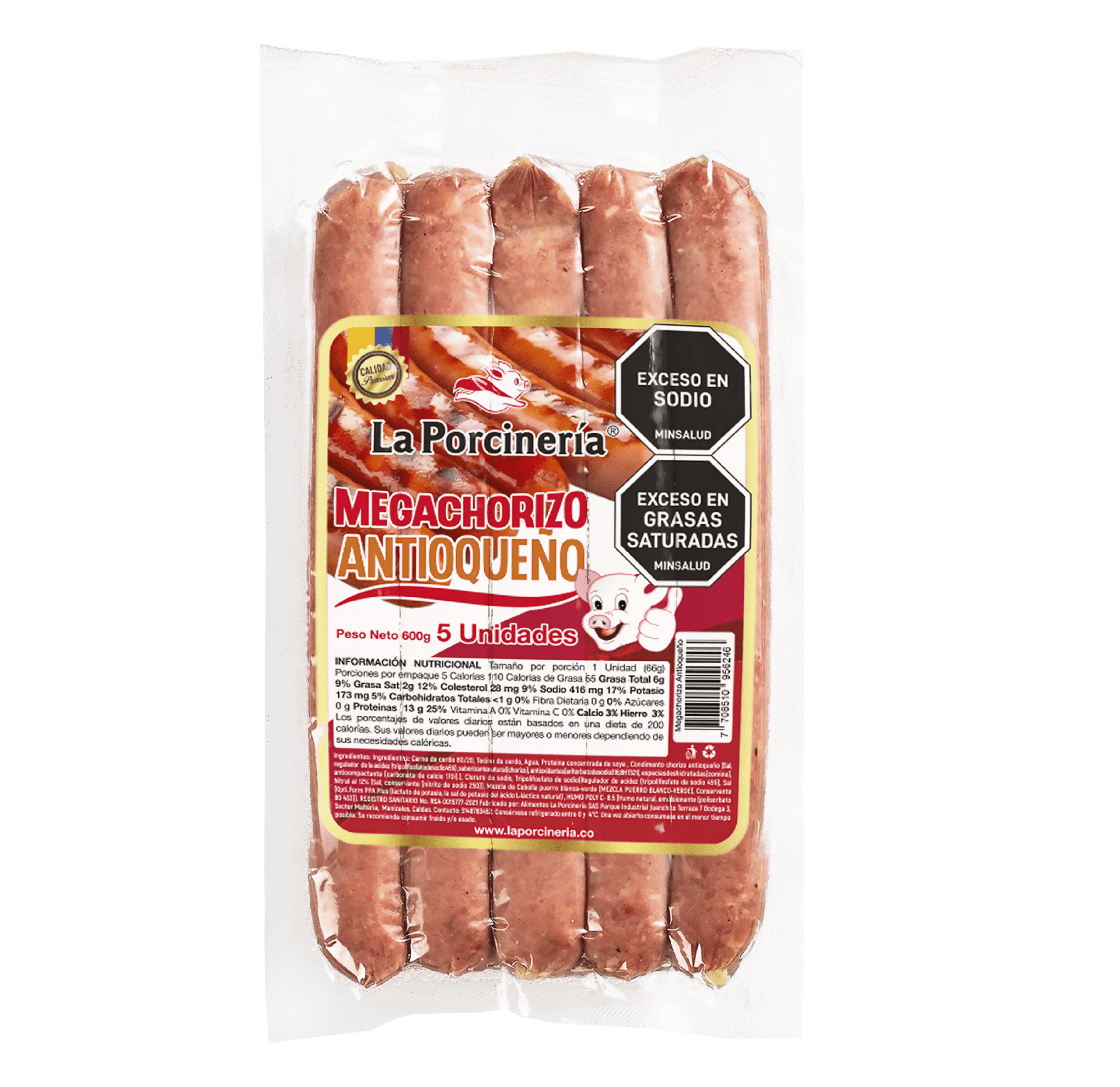Chorizo de gran tamaño con receta tradicional paisa. Métodos de cocción: asar, freír, hervir.