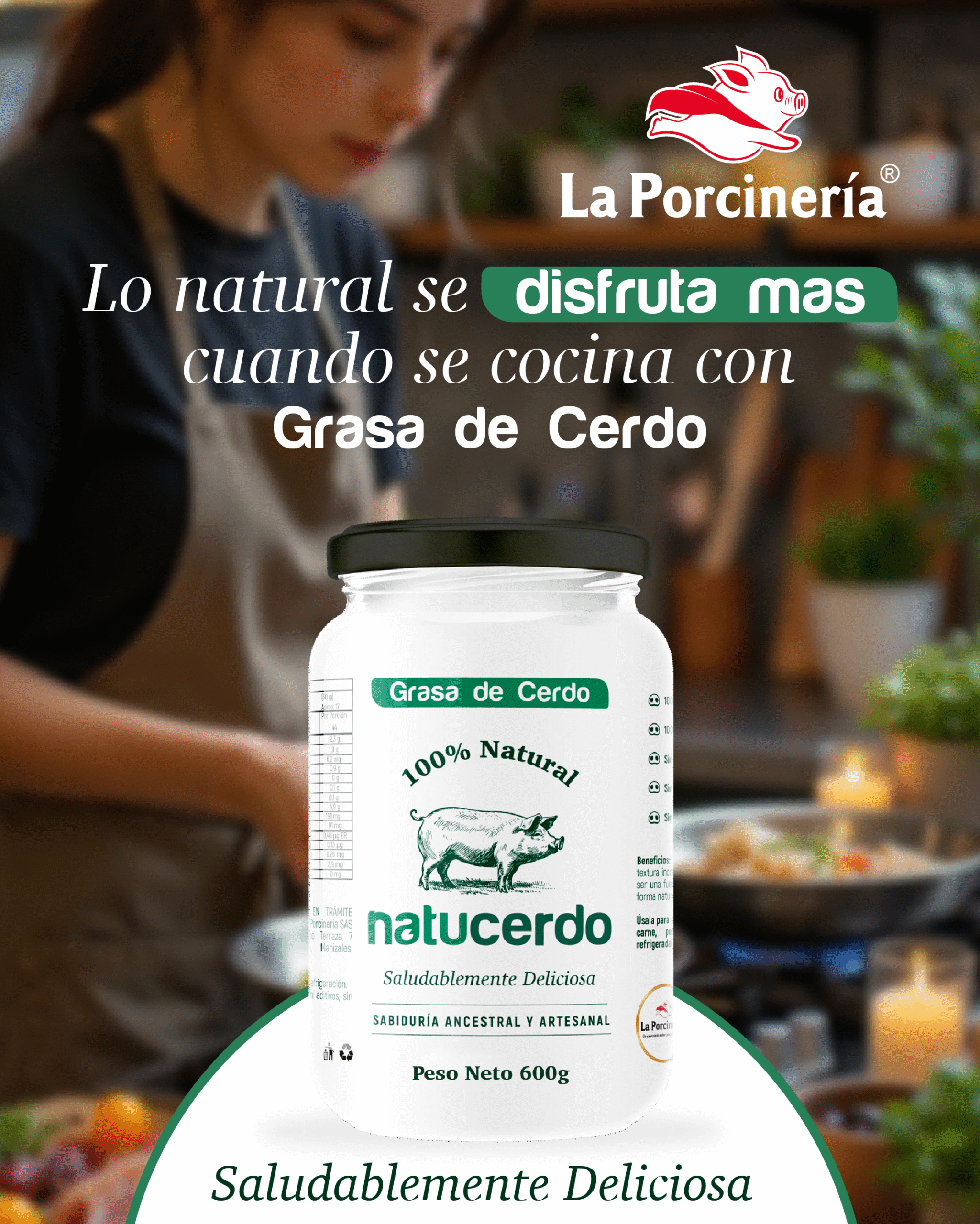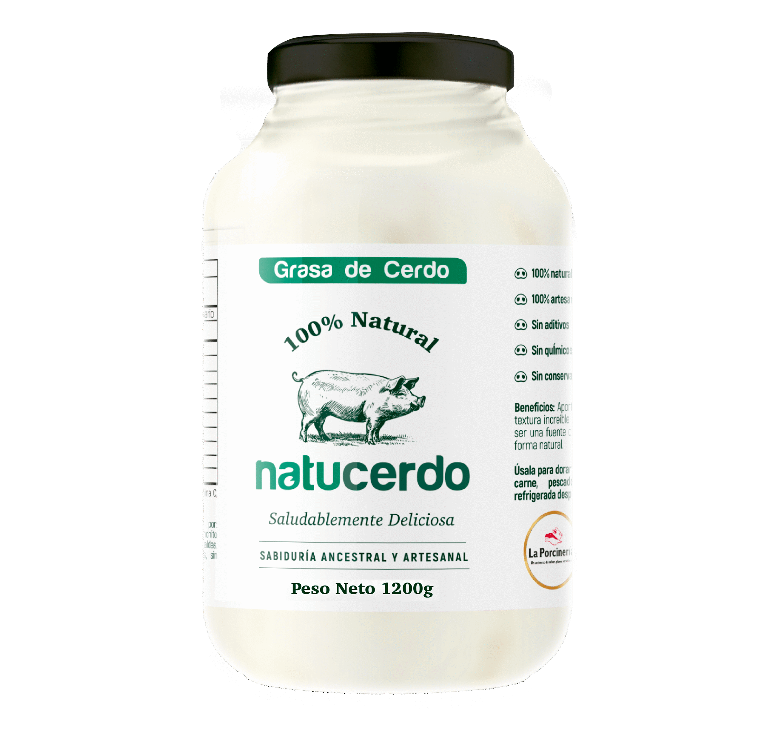 Grasa natural de cerdo, perfecta para cocinar y dar sabor. Lista para usar.