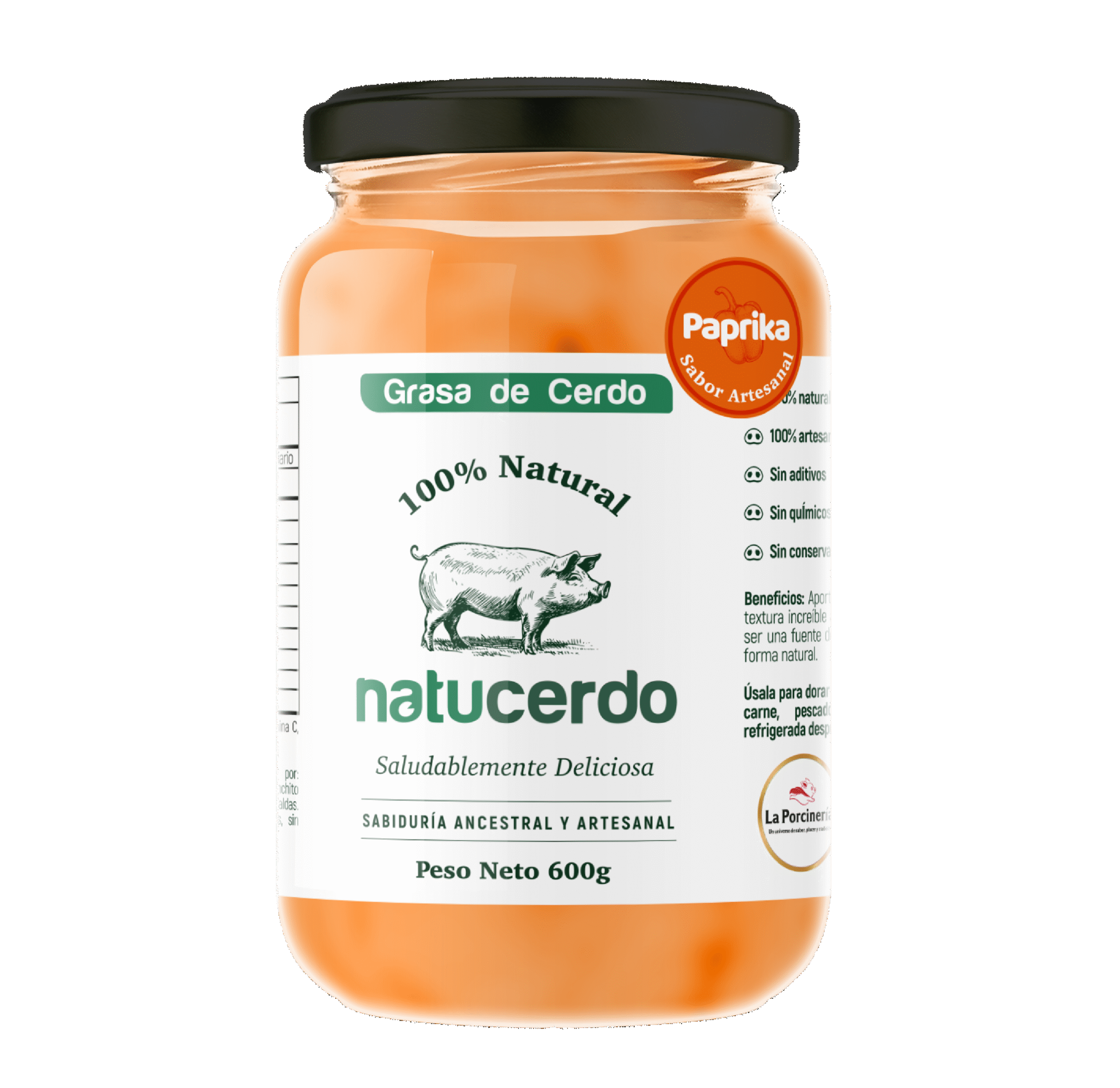 Grasa natural de cerdo, perfecta para cocinar y dar sabor. Lista para usar.
