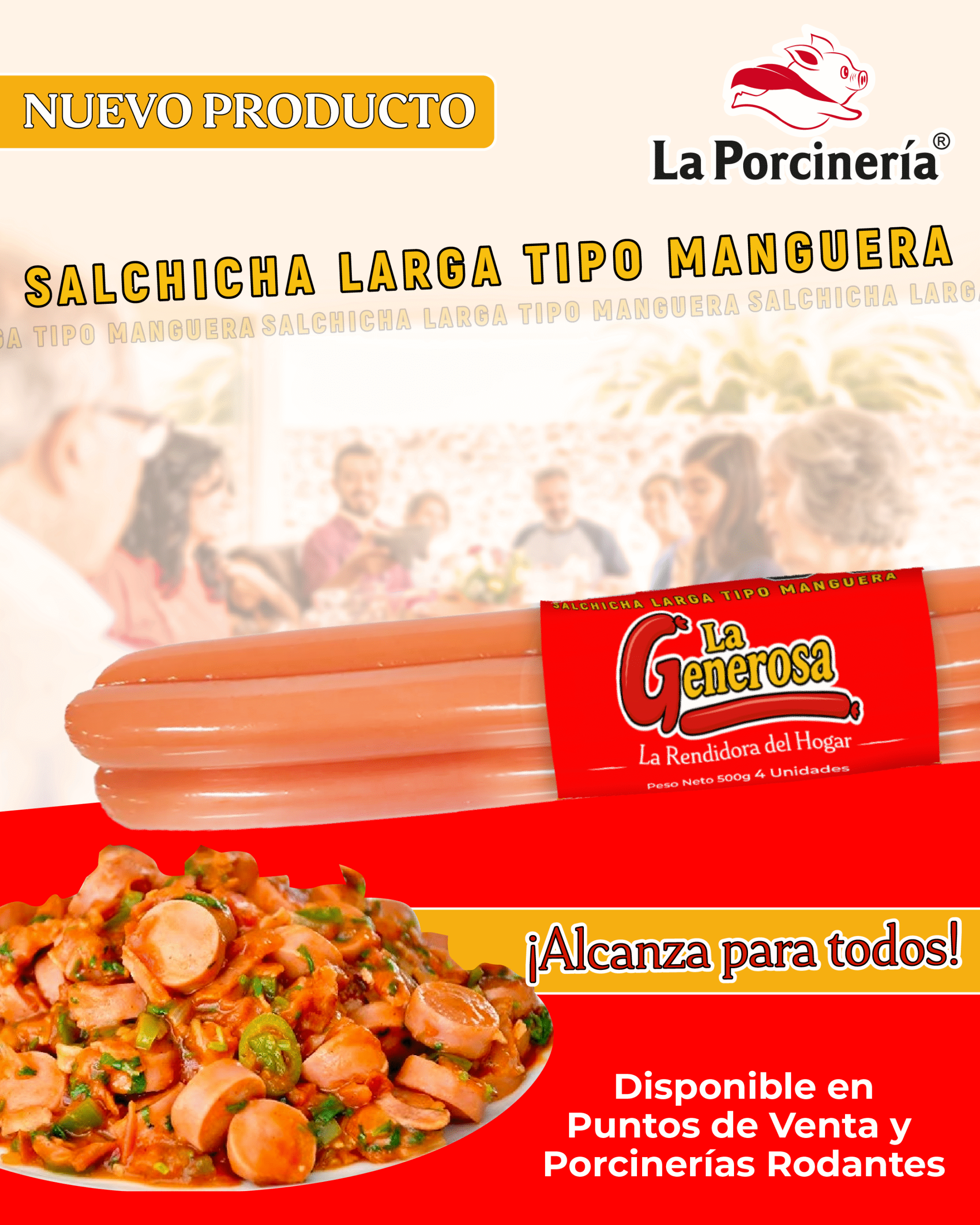 Salchicha de cerdo extralarga La Generosa. Métodos de cocción: asar, freír, hervir.