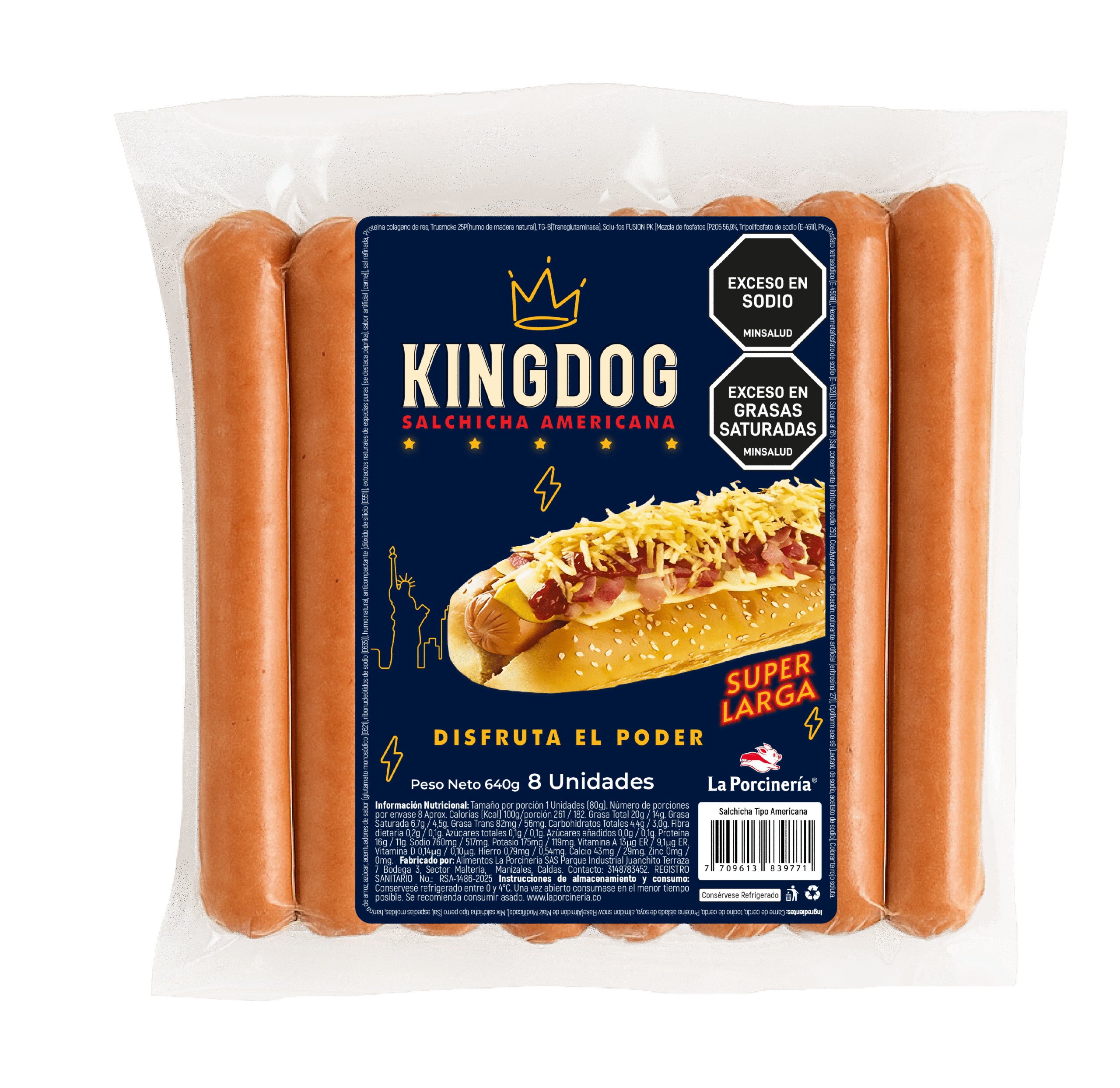 Embutido de carne de cerdo tipo salchicha americana. Métodos de cocción: asar, freír, hervir.